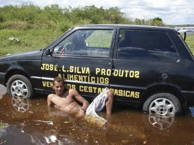Zezinho apruveito a possa da xuva pra tira uma onda no meiu do selviço. Meu amigu vosse e deiz.