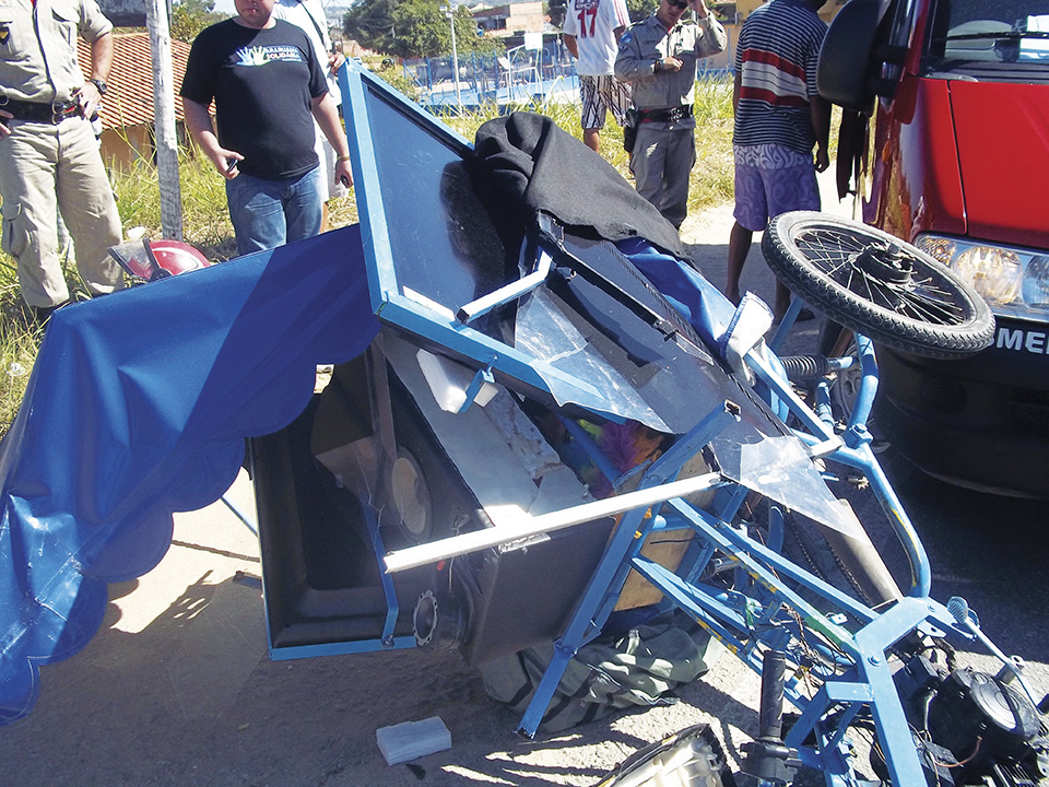 Nem o perito da Polícia Civil entendeu o que tinha pela frente: ele olhava, olhava, e não entendia exatamente do que se tratava aqueles ferros retorcidos. Tinha um frango assado e vários pães dentro da cabine. “É um carrinho de daqueles de vender comida?”. “Não”, tentei esclarecer. “Mas e esse toldo?”. Expliquei que era para proteger as duas TV´s de LCD de 32” recém-instaladas. Aí foi que ele não entendeu mais nada. “Duas TV´s? um carrinho de comida com duas TV´s?”. Tentei explicar que o frango assado era para consumo próprio, mas aí ele achou vários tubos e potes de produtos de beleza. “Ele vende ou usa isso também?”, perguntou o confuso perito. “Não usa não, isso ele vende. Até porque, produto de beleza não faz milagre”, explicamos. O perito então foi conversar com os policiais presentes, e de longe acompanhamos o diálogo. Naquele momento, populares atraídos pelo boato de que havia caído um disco-voador em plena Amaral Peixoto, chegavam ao local com máquinas fotográficas e filmadoras. Parece que agora isso virou moda em Araruama. Varginha daqui a pouco vai nos acusar de querer sequestrar o ET deles.